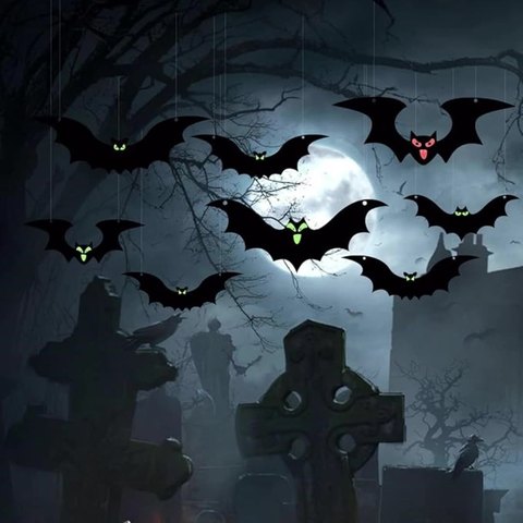 Cadılar bayramı yarasa asılı dekorasyon, aydınlık göz festivali parti malzemeleri, mekan dekorasyon sahne